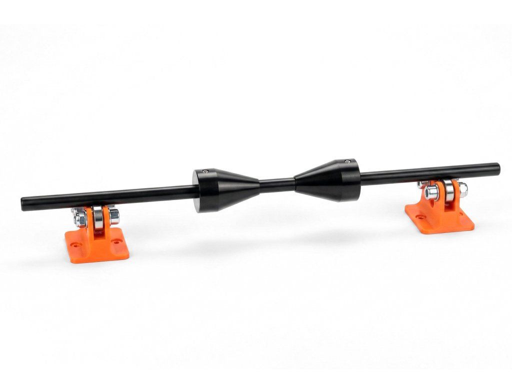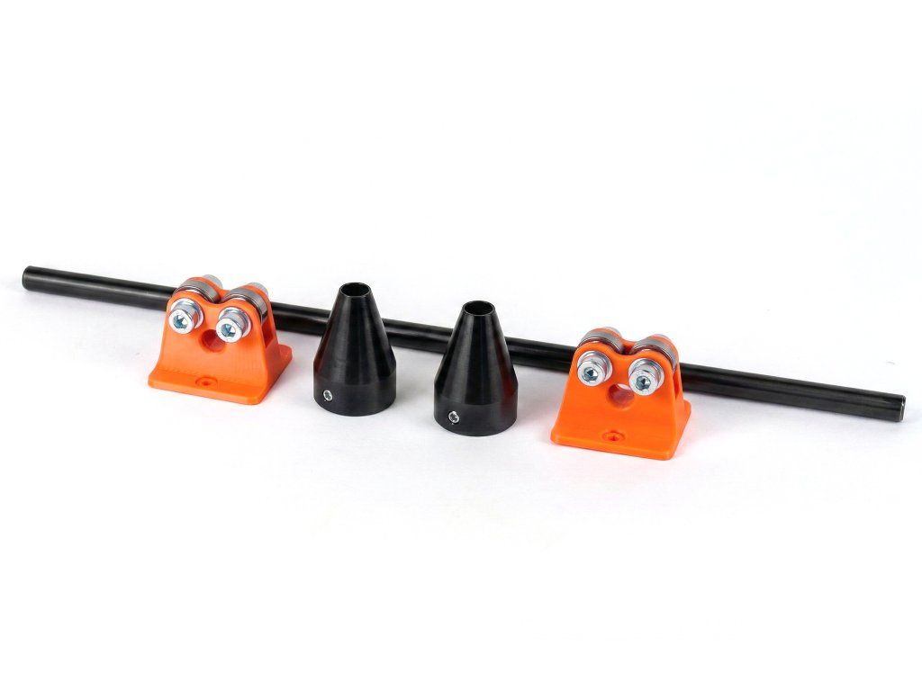 Stojánky mají praktické otvory uprostřed, kam je možné po vyvážení nasunout 12 mm osu společně s kužely. Vše pak tvoří jeden kompaktní celek.